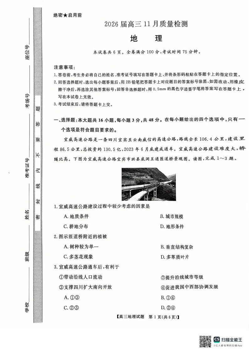 天壹名校联盟2026届高三11月质量检测 地理.pdf