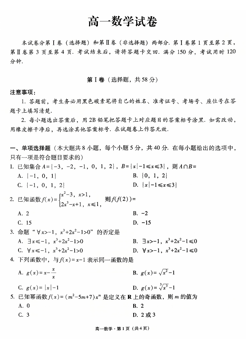 贵阳一中2025级高一年级教学质量监测卷(一)数学.pdf