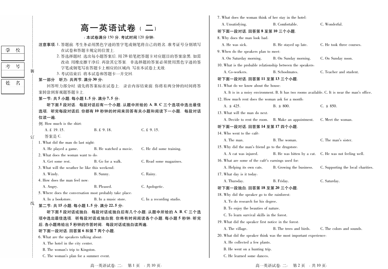 新时代高中教育联合体2025年11月高一学年期中联考巩固卷(二)英语.pdf
