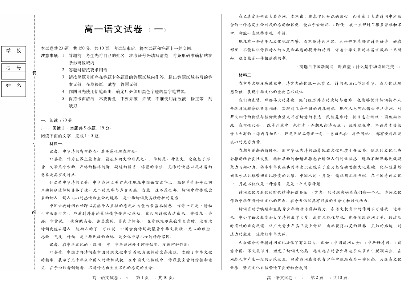 新时代高中教育联合体2025年11月高一学年期中联考巩固卷(一)语文.pdf