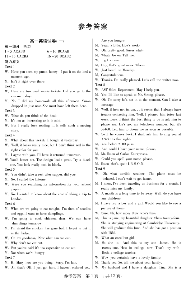 新时代高中教育联合体2025年11月高一学年期中联考巩固卷(一)英语答案.pdf