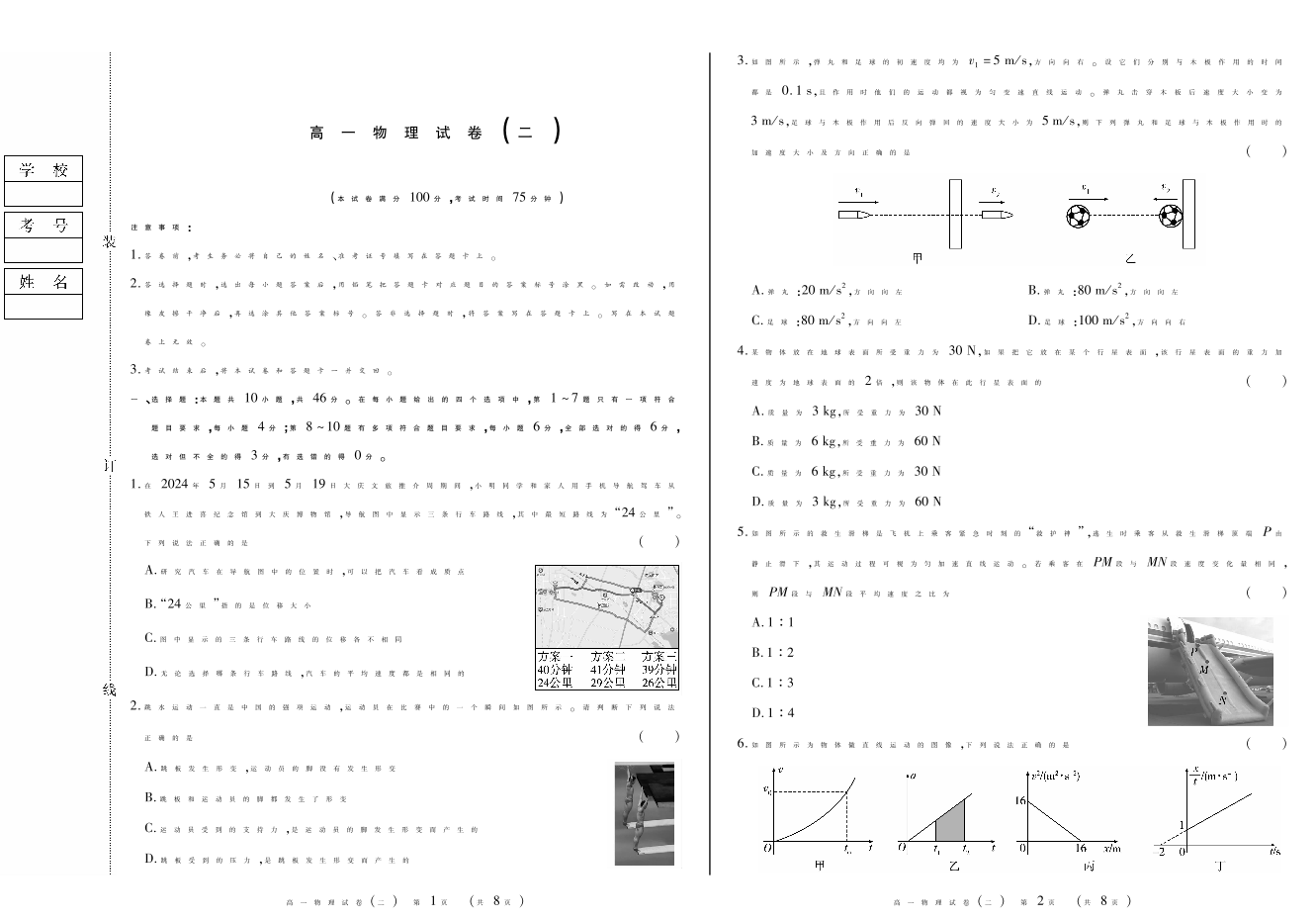 新时代高中教育联合体2025年11月高一学年期中联考巩固卷(一)物理.pdf
