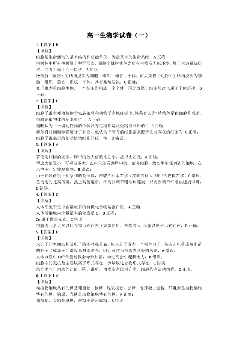 新时代高中教育联合体2025年11月高一学年期中联考巩固卷(一)生物答案.pdf