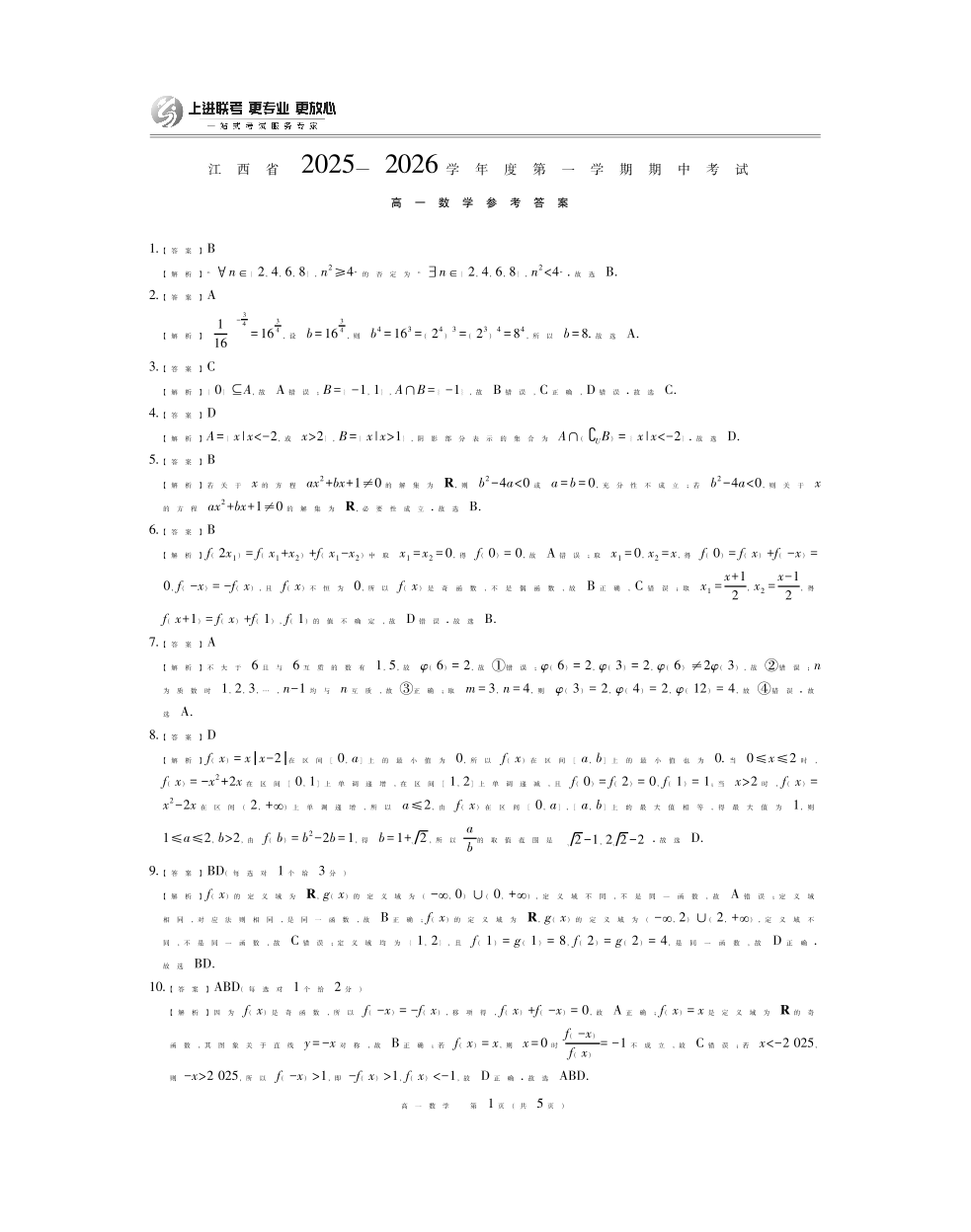 江西省上进联考2025-2026学年高一上学期11月期中考试·数学答案.pdf