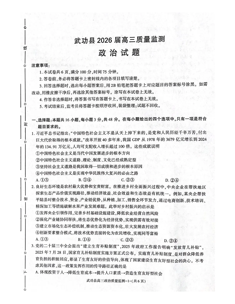 武功县2026届11月高三质量监测 政治.pdf