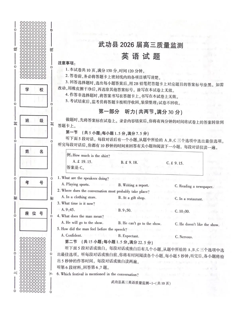 武功县2026届11月高三质量监测 英语.pdf