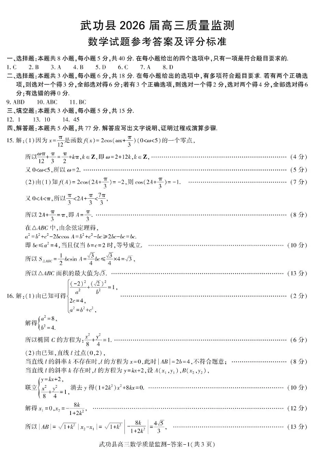 武功县2026届11月高三质量监测 数学答案.pdf