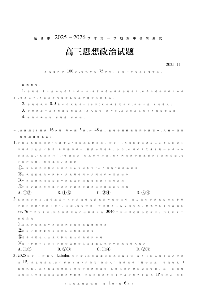 运城市2025-2026学年第一学期期中调研测试 政治.pdf