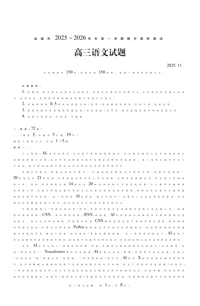 运城市2025-2026学年第一学期期中调研测试 语文.pdf