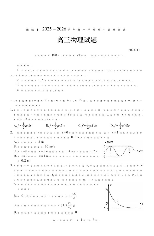 运城市2025-2026学年第一学期期中调研测试 物理.pdf