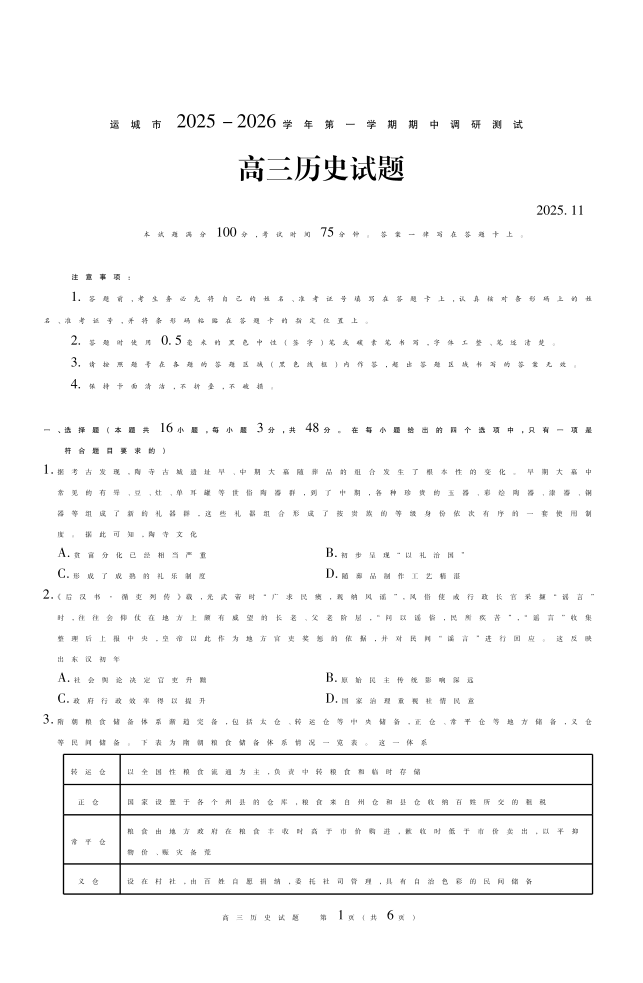 运城市2025-2026学年第一学期期中调研测试 历史.pdf