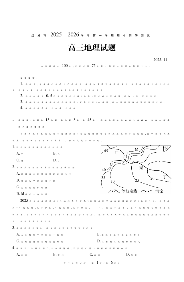 运城市2025-2026学年第一学期期中调研测试 地理.pdf