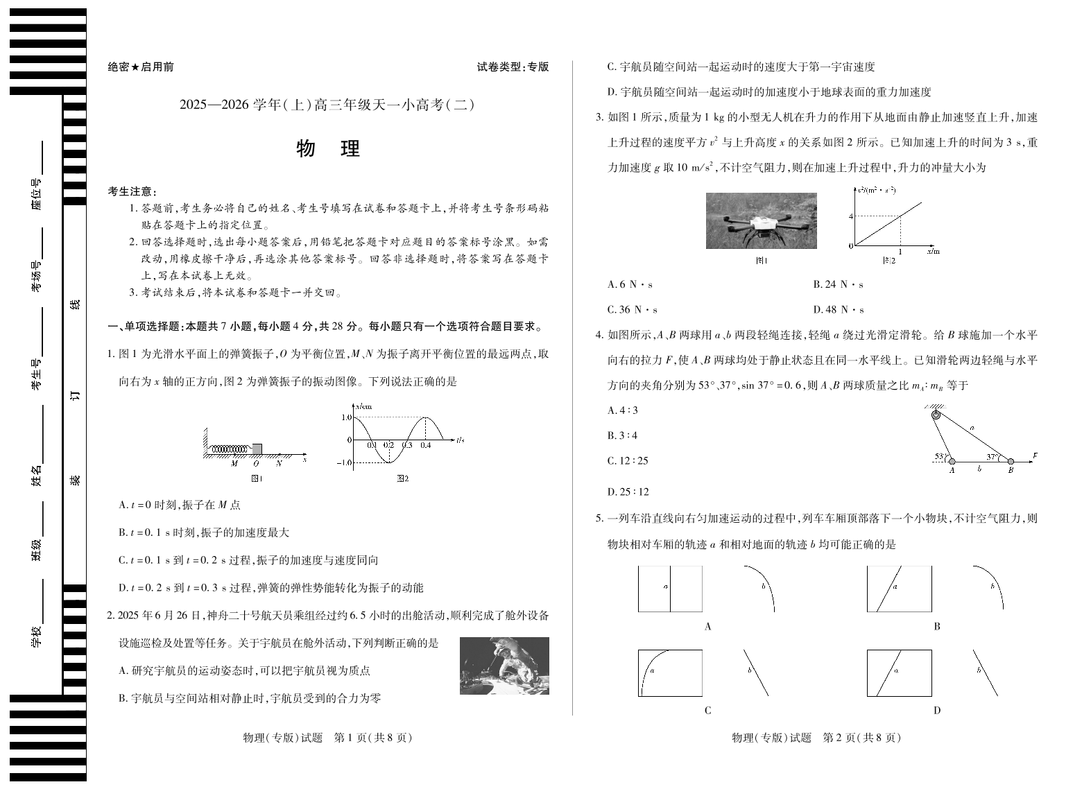 天一大联考·2025-2026学年(上)高三年级天一小高考(二)物理(专版).pdf