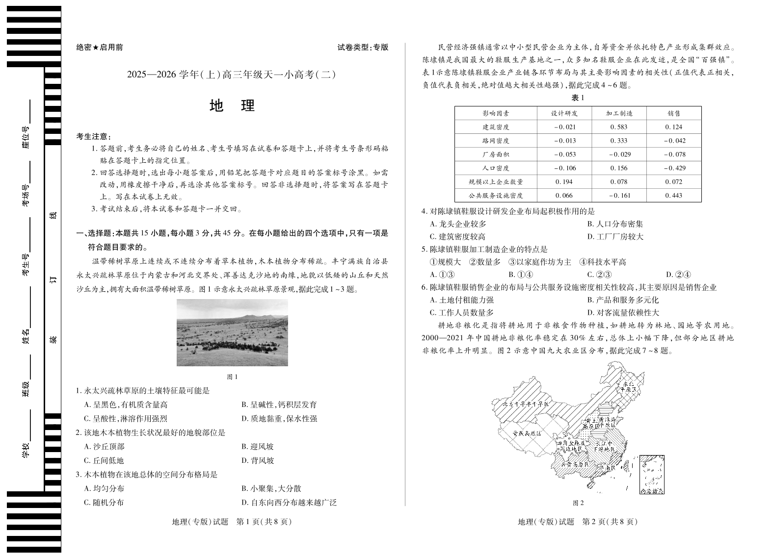 天一大联考·2025-2026学年(上)高三年级天一小高考(二)地理(专版).pdf