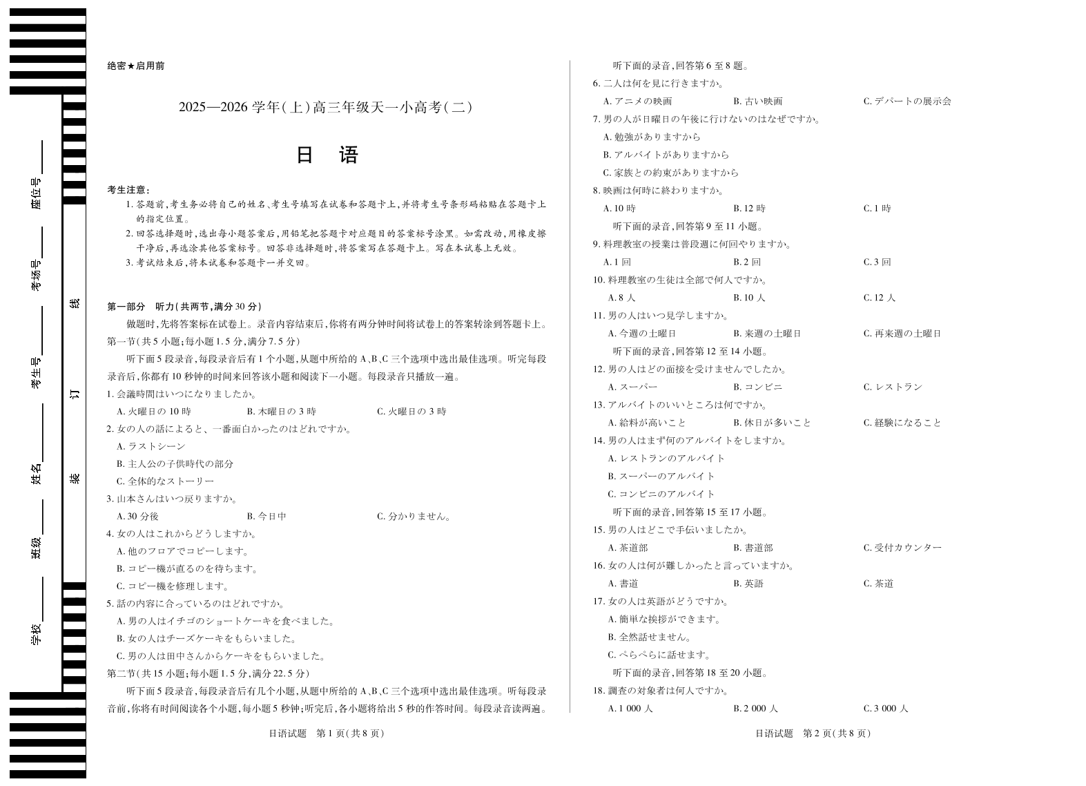 天一大联考·2025-2026学年(上)高三年级天一小高考(二)日语.pdf