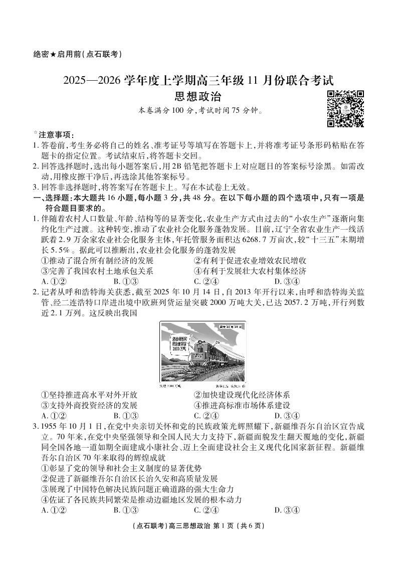 点石联考2025—2026学年度上学期高三年级11月份联合考试 政治.pdf