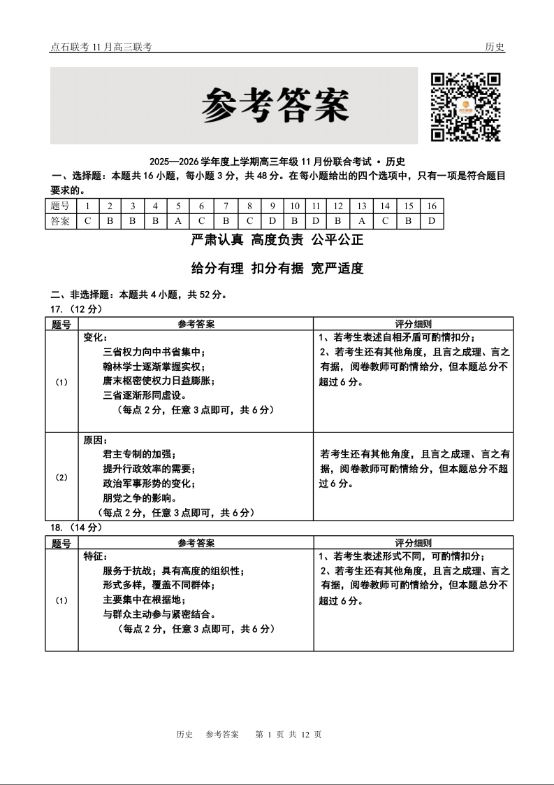 点石联考2025—2026学年度上学期高三年级11月份联合考试 历史答案.docx