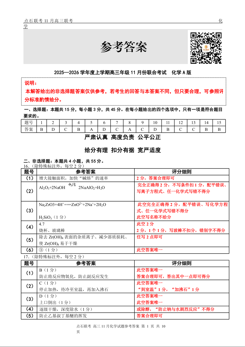 点石联考2025—2026学年度上学期高三年级11月份联合考试 化学(A版)答案.docx