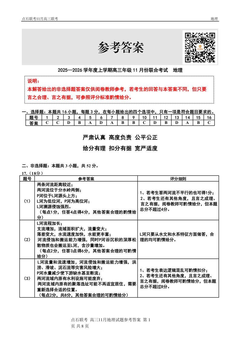 点石联考2025—2026学年度上学期高三年级11月份联合考试 地理答案.doc