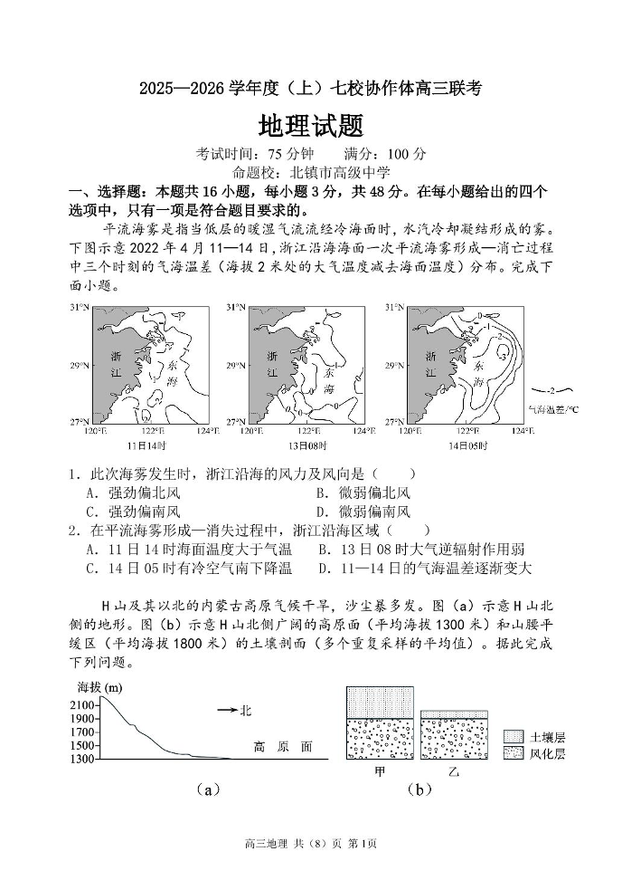 辽宁省七校协作体2025-2026学年高三上学期期中考试 地理.pdf