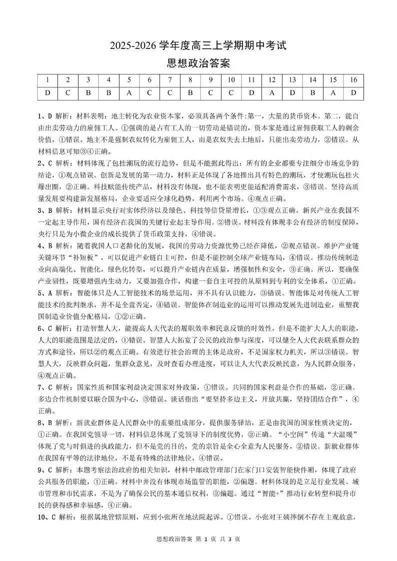 楚天协作体2025-2026学年度高三上学期期中考试 政治答案.pdf