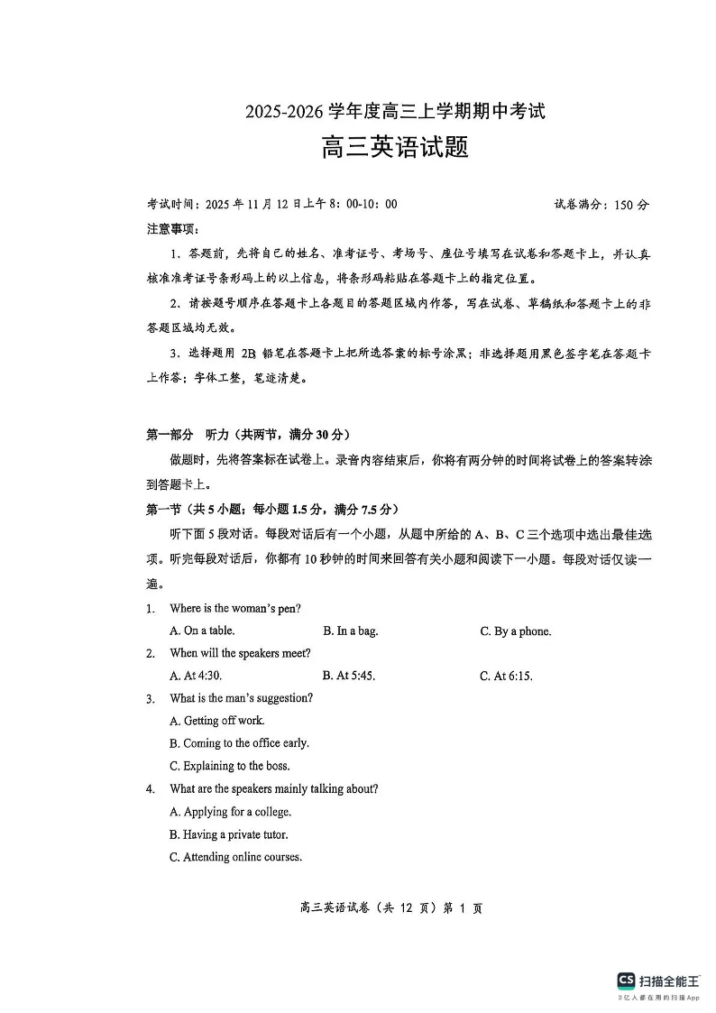 楚天协作体2025-2026学年度高三上学期期中考试 英语.pdf