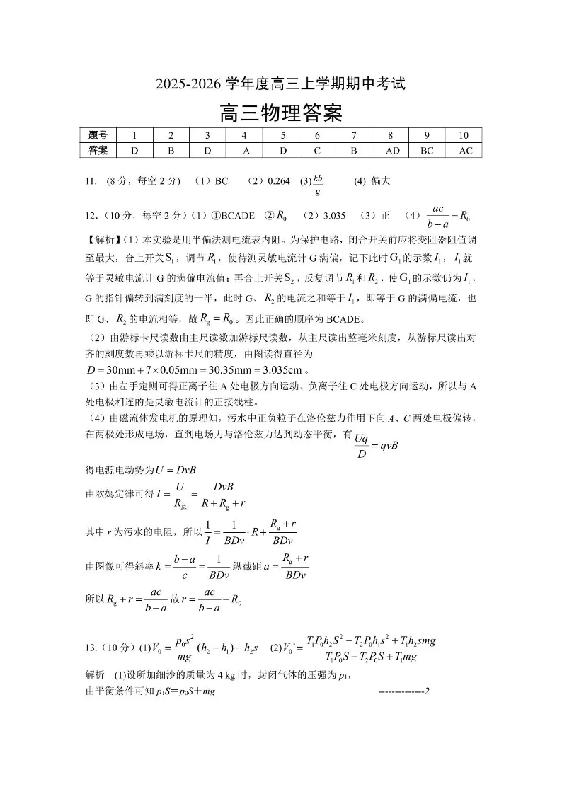 楚天协作体2025-2026学年度高三上学期期中考试 物理答案.pdf