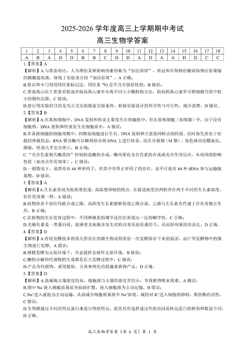 楚天协作体2025-2026学年度高三上学期期中考试 生物答案.pdf