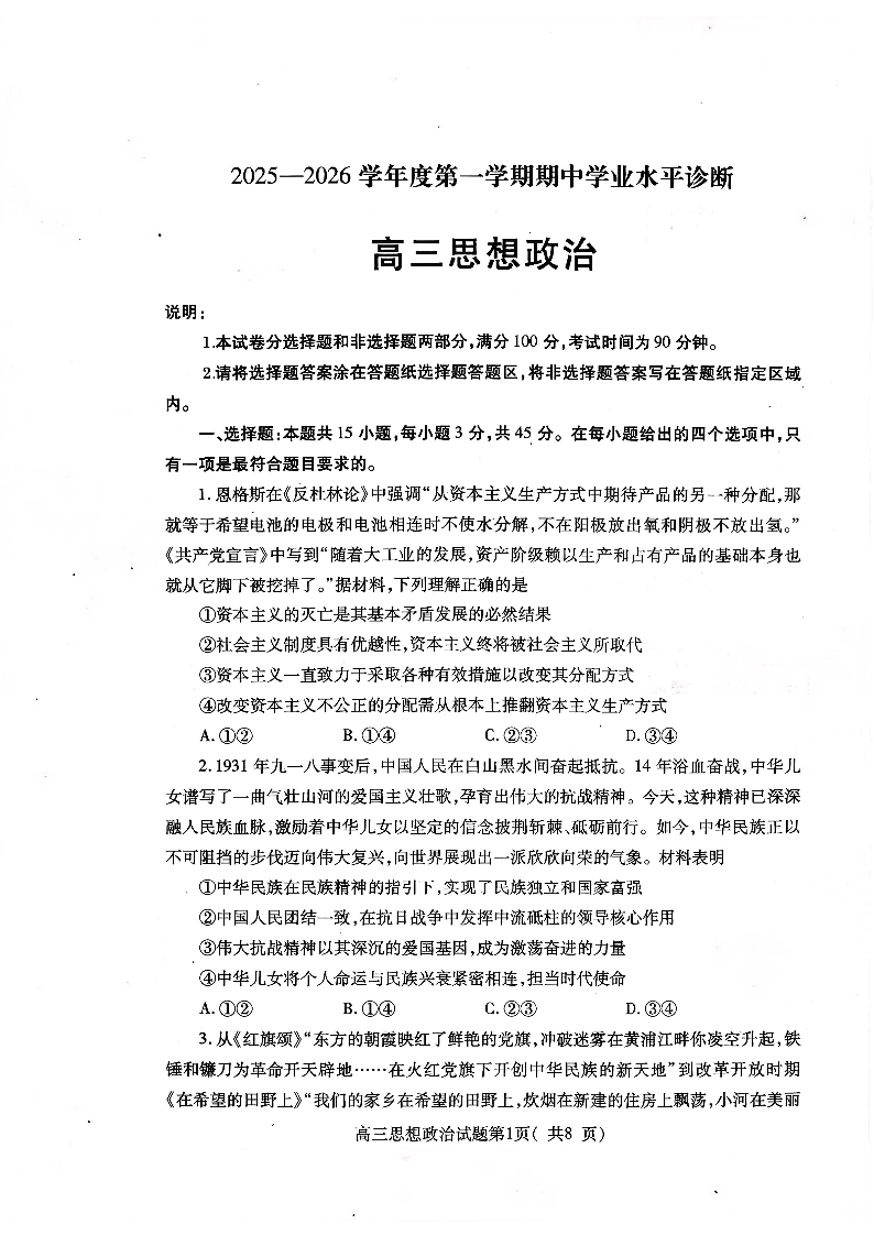 2025—2026学年度第一学期期中学业水平诊断 政治.pdf