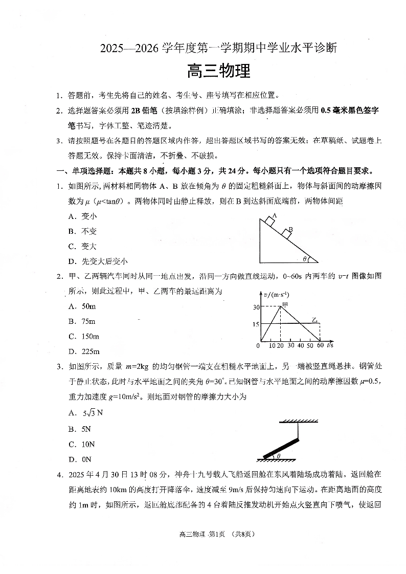 2025—2026学年度第一学期期中学业水平诊断 物理.pdf