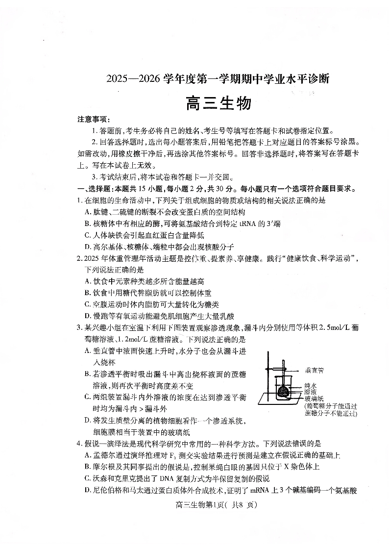2025—2026学年度第一学期期中学业水平诊断 生物.pdf