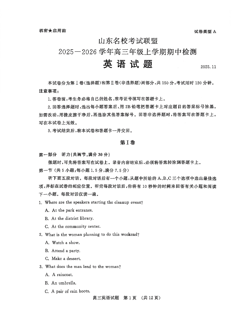山东名校考试联盟2025一2026学年高三年级上学期期中检测 英语.pdf