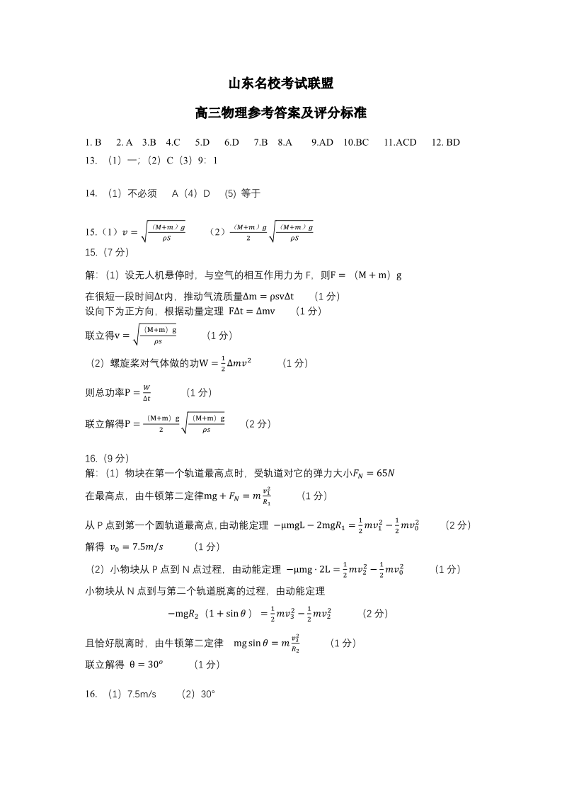 山东名校考试联盟2025一2026学年高三年级上学期期中检测 物理答案.pdf