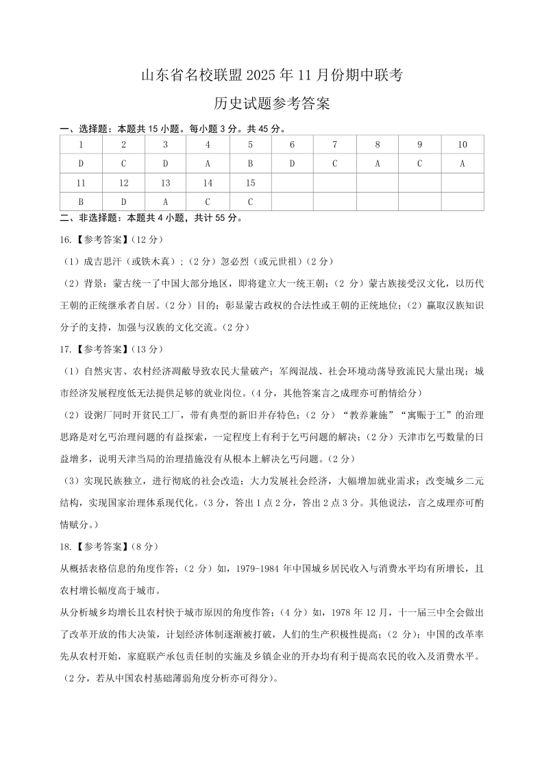 山东名校考试联盟2025一2026学年高三年级上学期期中检测 历史答案.pdf