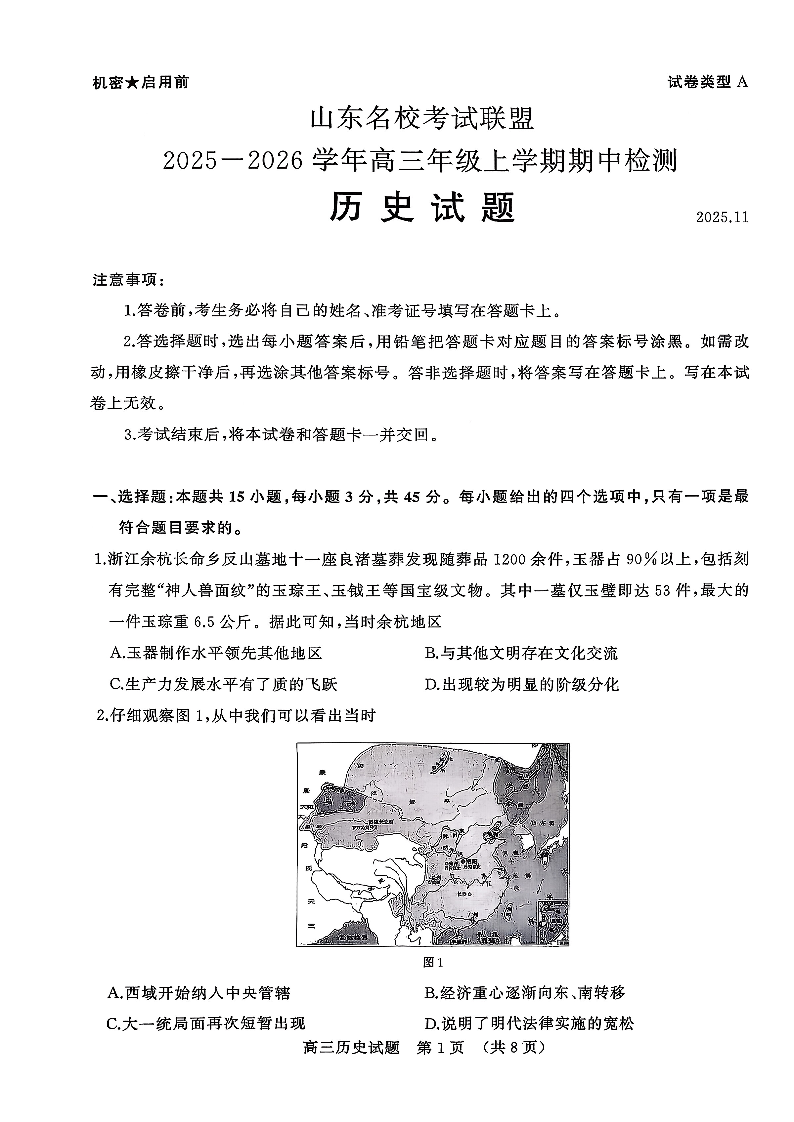 山东名校考试联盟2025一2026学年高三年级上学期期中检测 历史.pdf
