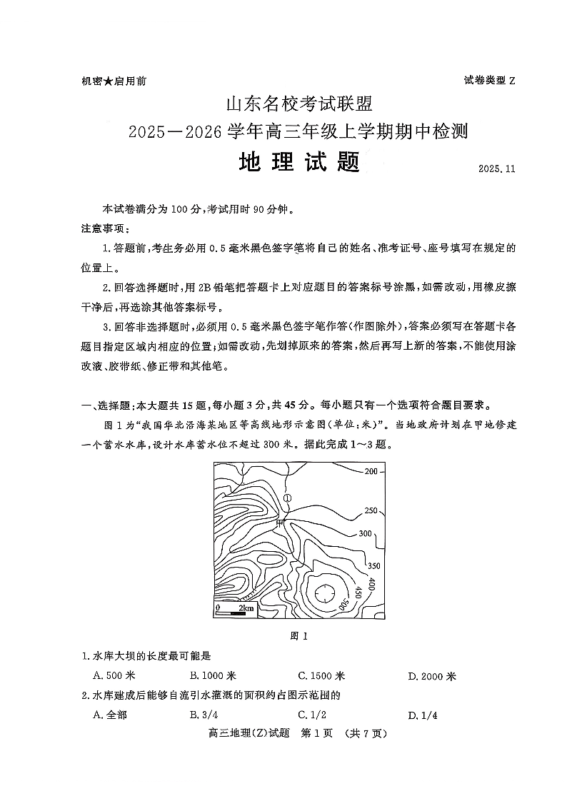 山东名校考试联盟2025一2026学年高三年级上学期期中检测 地理(Z卷).pdf