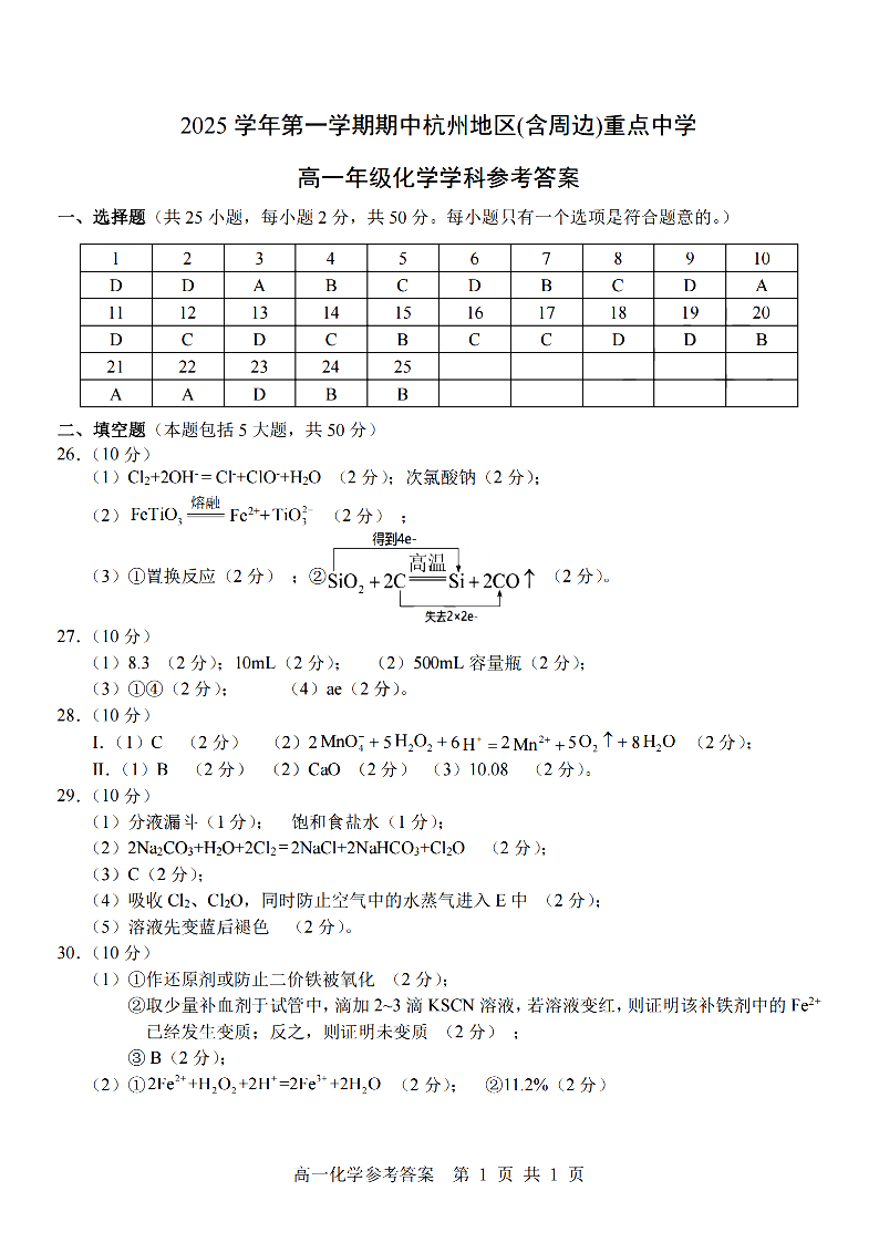 杭州含周边高一期中 化学答案.pdf