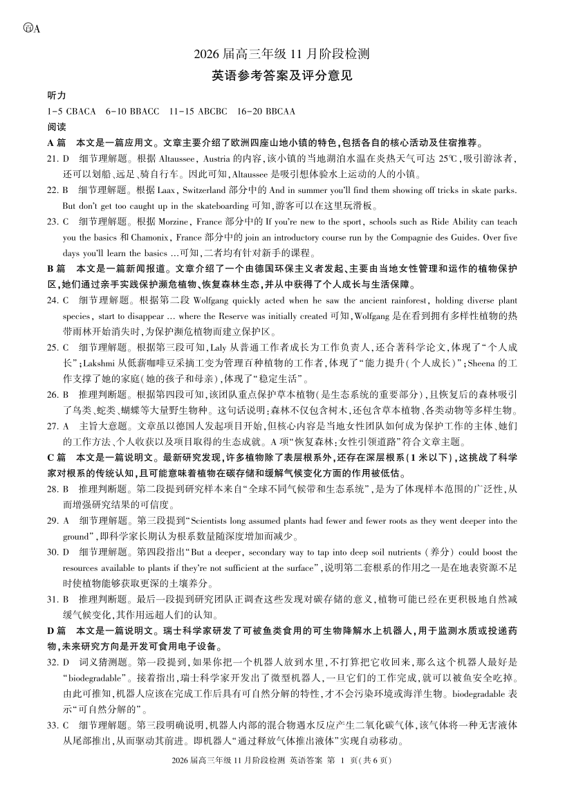 河南省百师联盟2026届高三年级11月阶段检测 英语答案.pdf