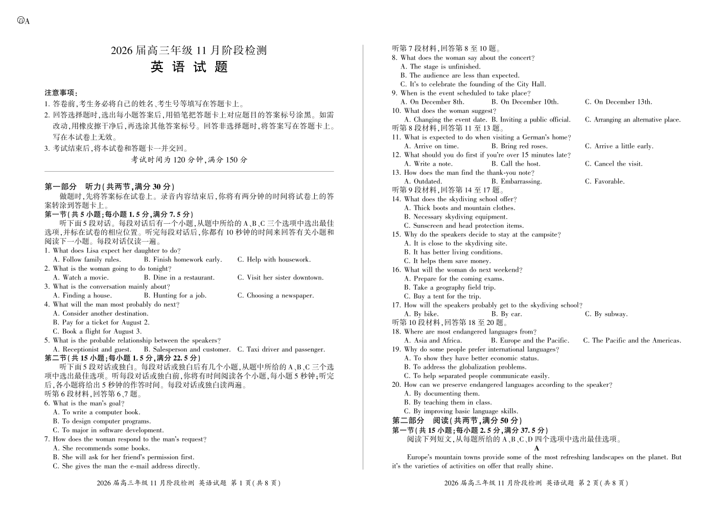 河南省百师联盟2026届高三年级11月阶段检测 英语.pdf