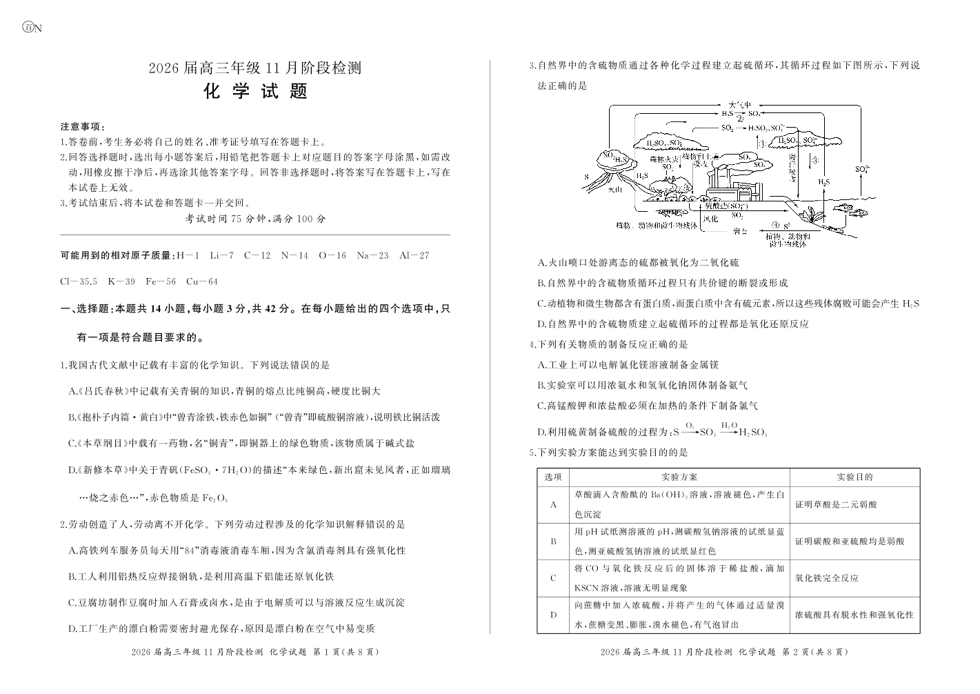 河南省百师联盟2026届高三年级11月阶段检测 化学.pdf