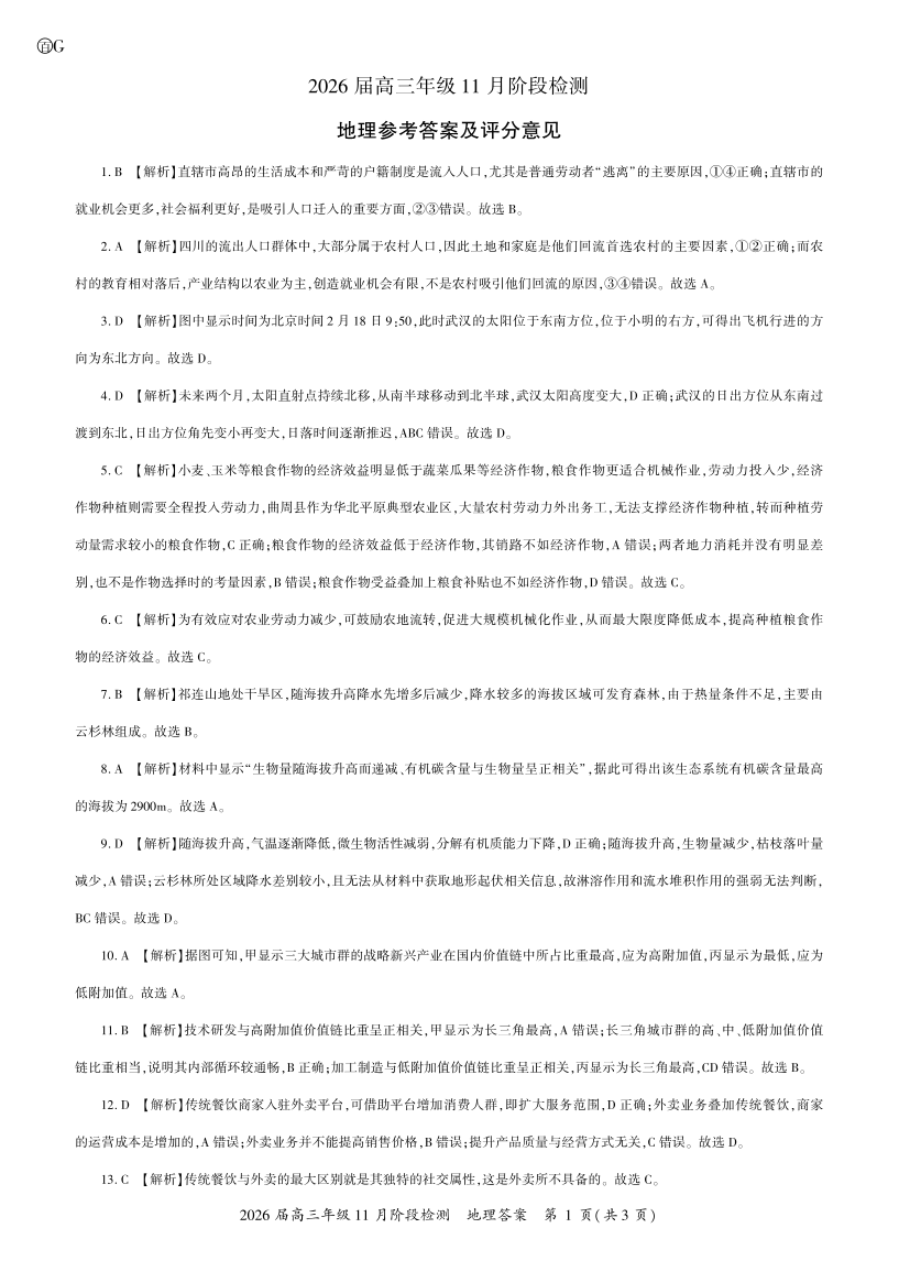 河南省百师联盟2026届高三年级11月阶段检测 地理答案.pdf