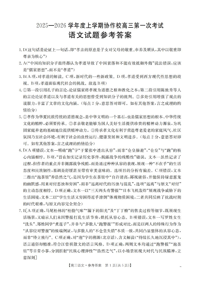 辽宁省葫芦岛市协作校2026届高三上学期第一次考试 语文答案.pdf