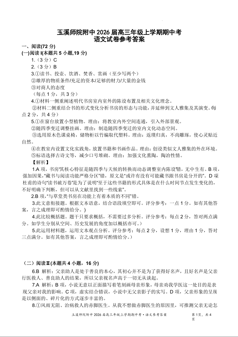 云南省玉溪师范学院附属中学2026届高三11月期中考试 语文答案.docx
