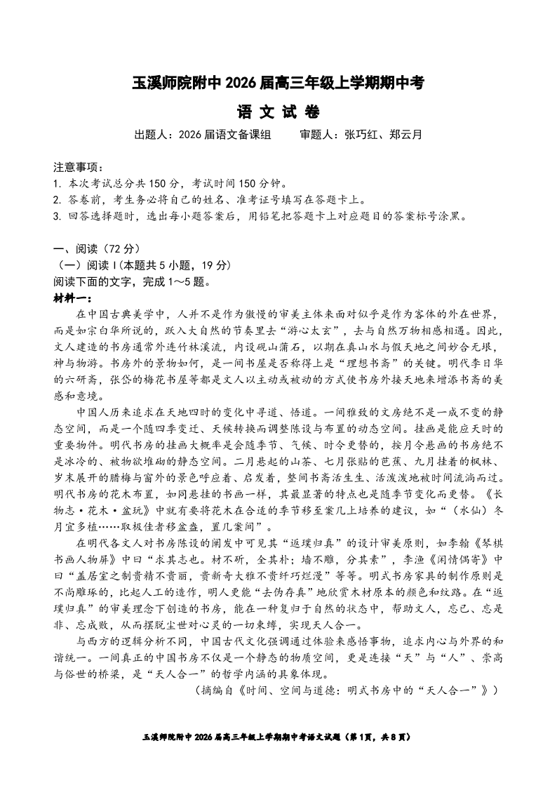 云南省玉溪师范学院附属中学2026届高三11月期中考试 语文.pdf