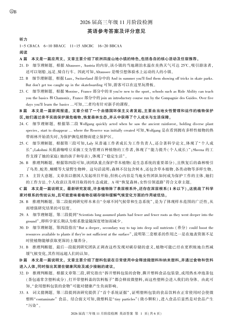 四川省百师联盟2026届高三年级11月阶段检测 英语答案.pdf