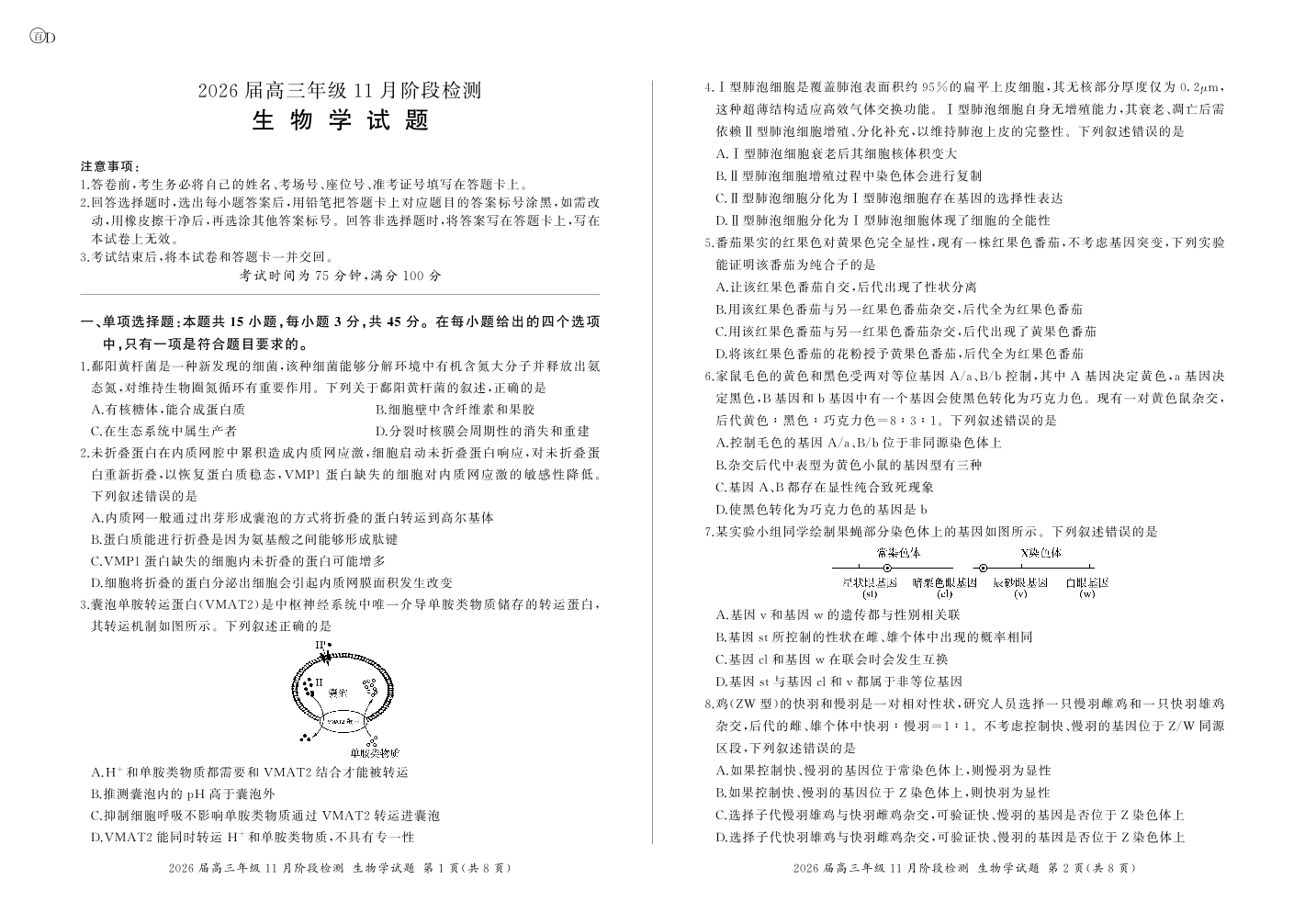 四川省百师联盟2026届高三年级11月阶段检测 生物.pdf