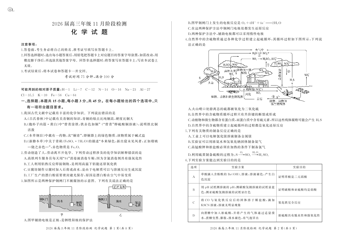 四川省百师联盟2026届高三年级11月阶段检测 化学.pdf