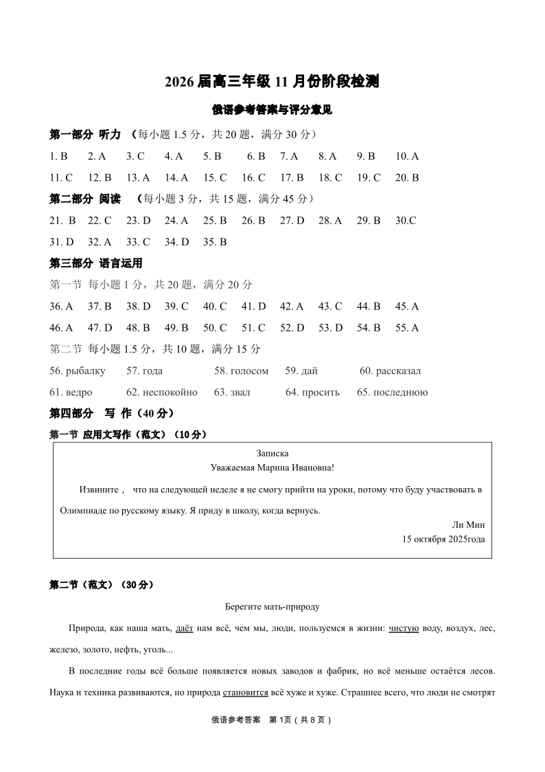 四川省百师联盟2026届高三年级11月阶段检测 俄语答案.pdf