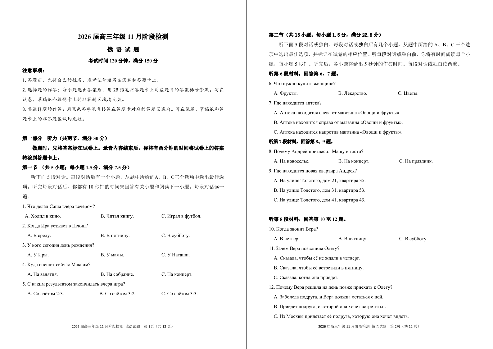四川省百师联盟2026届高三年级11月阶段检测 俄语.pdf