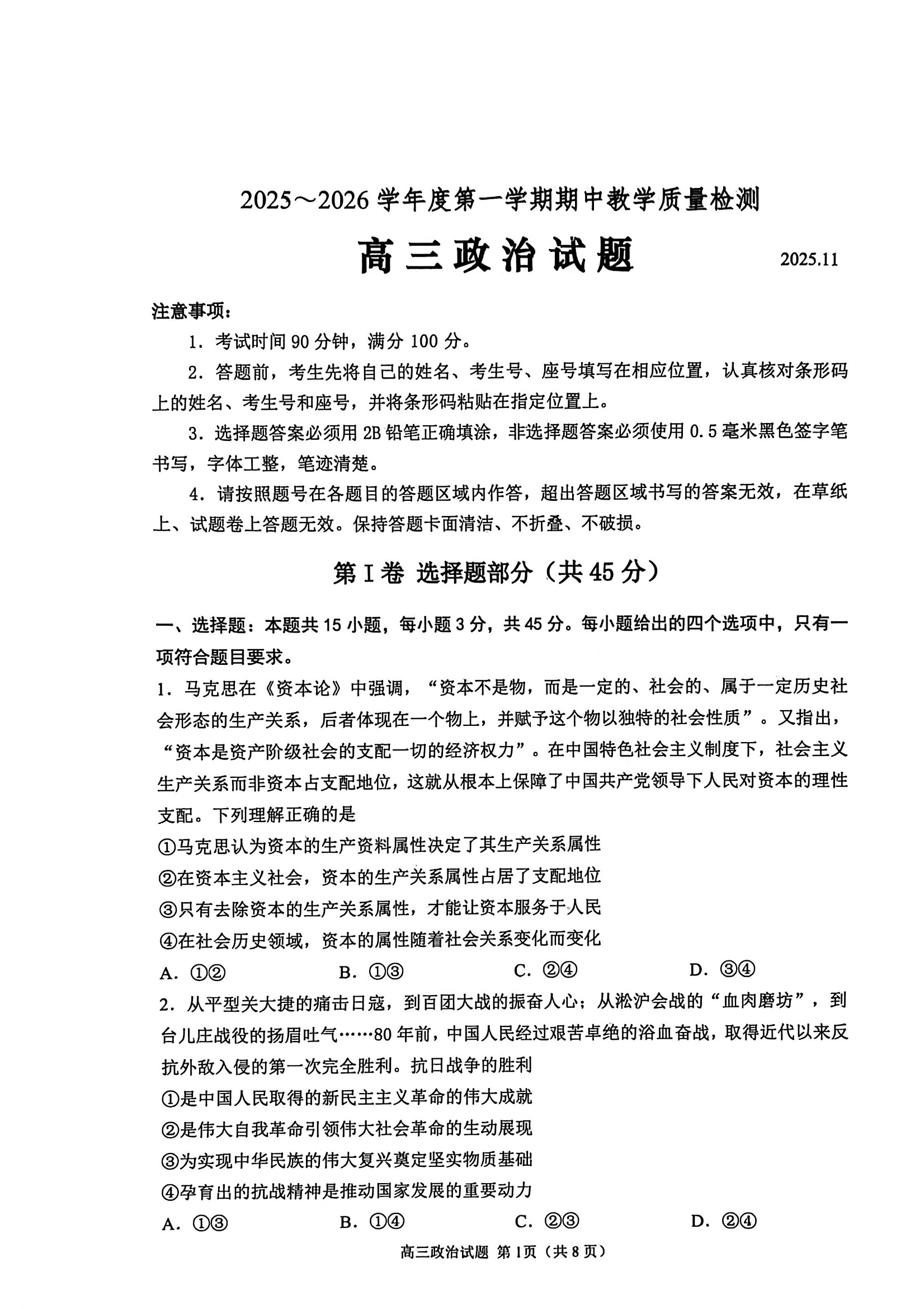 聊城市2025~2026学年度第一学期期中教学质量检测 政治.pdf